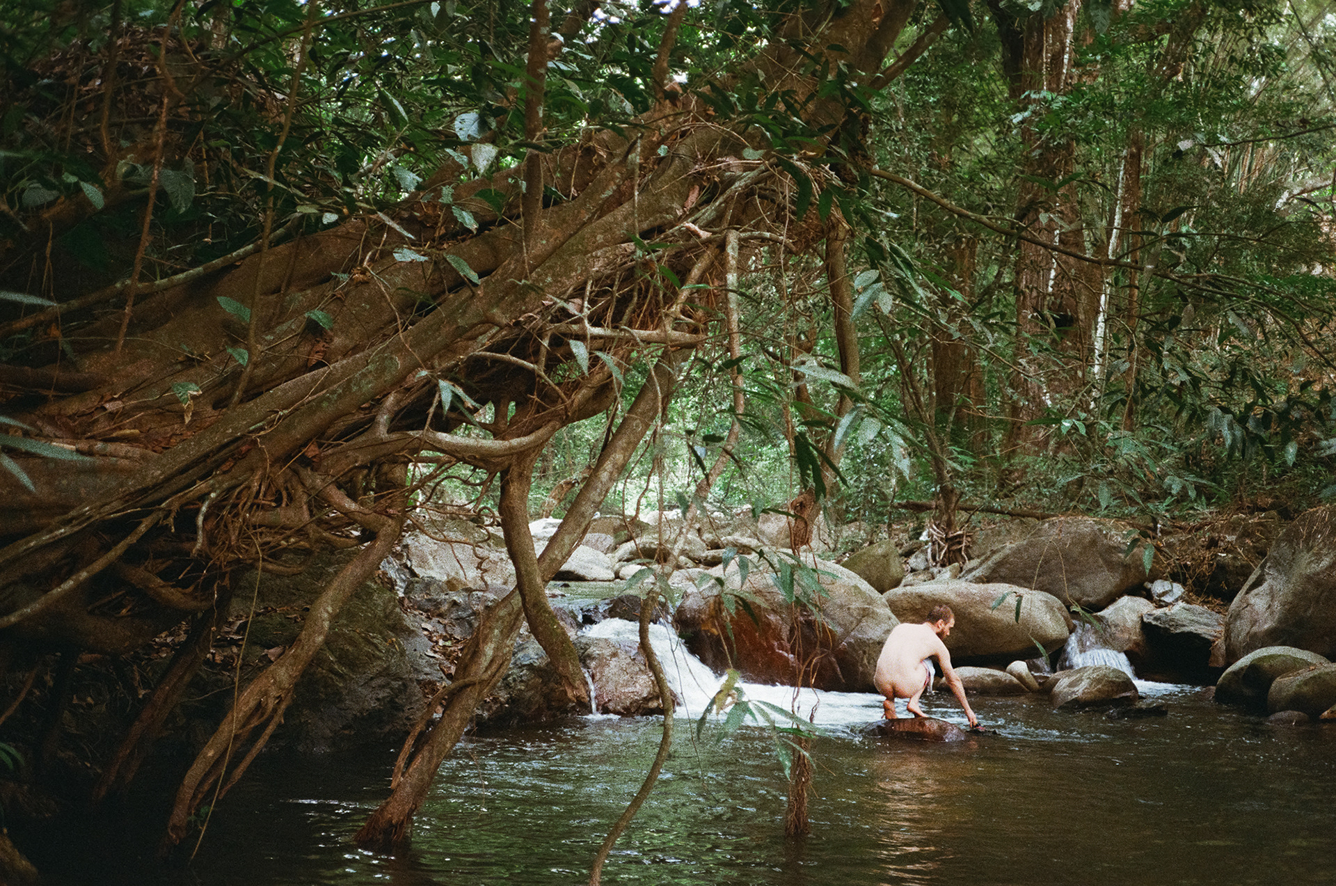 This project, shot on 35mm follows Den walking upstream, cooling his balls, sniffing his armpit and whatever the human mind can come up with to entertain itself in nature. With the jungle as a stage, he puts a play for himself.